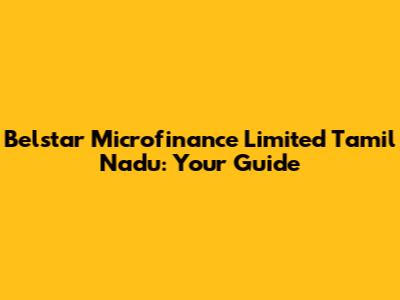 Belstar Microfinance In Tamil Nadu: Your Guide