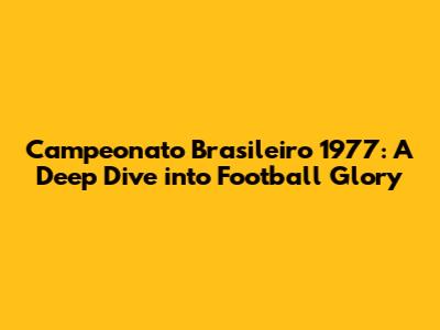 Campeonato Brasileiro 1977: A Deep Dive Into Football Glory