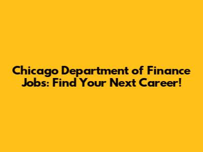 Chicago Department Of Finance Jobs: Find Your Next Career!