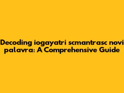 Decoding Iogayatri Scmantrasc Novi Palavra: A Comprehensive Guide