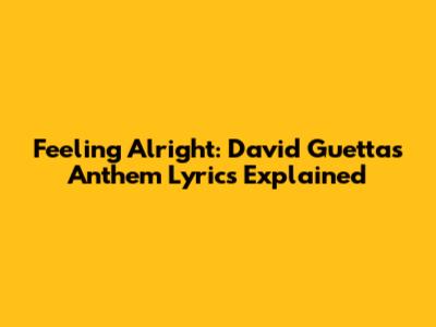 Feeling Alright: David Guetta's Anthem Lyrics Explained