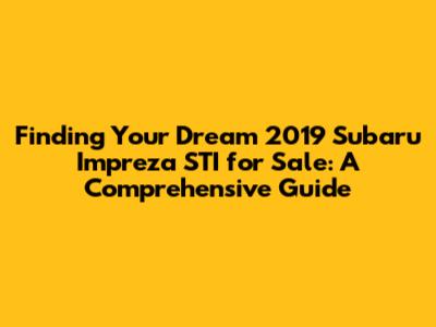 Hey guys! Are you ready to dive deep into the world of the 2019 Subaru Impreza STI for sale? This car is a real gem, a blend of performance and practicality that makes it a fan favorite. Finding the right one can feel like a treasure hunt, but don't worry, I'm here to equip you with all the knowledge you need. We'll explore where to look, what to look for, and how to make sure you're getting a sweet deal on this amazing vehicle. Let's get started!