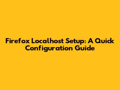 Firefox Localhost Setup: A Quick Configuration Guide