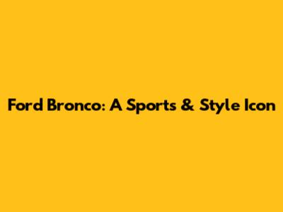 Ford Bronco: A Sports & Style Icon