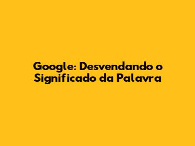 Google: Desvendando O Significado Da Palavra