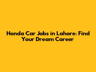 Honda Car Jobs In Lahore: Find Your Dream Career