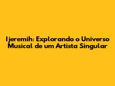 As melhores músicas de Ijeremih são um reflexo de sua versatilidade e talento. Cada canção é uma experiência única, que transporta o ouvinte para um universo de emoções e sensações. Nesta seção, vamos destacar algumas das canções mais emblemáticas de sua carreira, que marcaram época e conquistaram o coração de milhões de fãs.