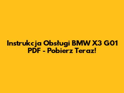 Instrukcja Obsługi BMW X3 G01 PDF - Pobierz Teraz!