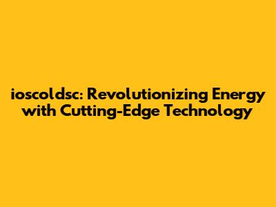 Ioscoldsc: Revolutionizing Energy With Cutting-Edge Technology