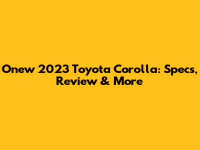 Onew 2023 Toyota Corolla: Specs, Review & More