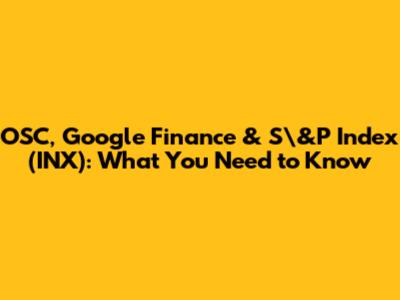 Let's dive into the world of OSC, Google Finance, and the S&P Index (INX). For anyone involved in finance, whether you're a seasoned investor or just starting, understanding these concepts is super important. We're going to break down each one, explore how they connect, and give you some practical insights. So, buckle up, guys, and let's get started!