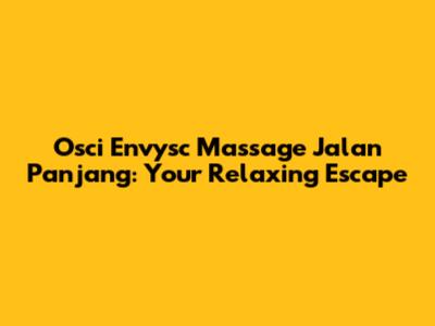 Hey guys! Looking for the ultimate relaxation experience in the heart of Jalan Panjang? Look no further! We're diving deep into the world of Osci Envysc Massage, your go-to destination for unwinding and rejuvenating your mind, body, and soul. Whether you're a seasoned massage enthusiast or a curious newbie, this is your comprehensive guide to everything Osci Envysc has to offer. So, kick back, relax, and let's explore the blissful world of Osci Envysc Massage on Jalan Panjang!