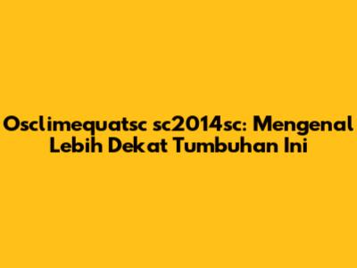 Osclimequatsc Sc2014sc: Mengenal Lebih Dekat Tumbuhan Ini