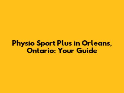 Physio Sport Plus In Orleans, Ontario: Your Guide