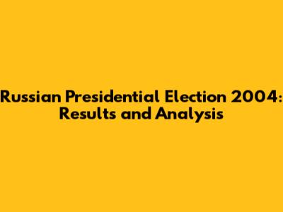 Russian Presidential Election 2004: Results And Analysis