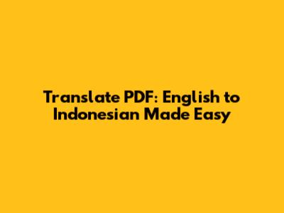 Translate PDF: English To Indonesian Made Easy