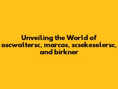 Unveiling The World Of Oscwaltersc, Marcos, Scsekeselersc, And Birkner