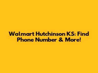 Walmart Hutchinson KS: Find Phone Number & More!