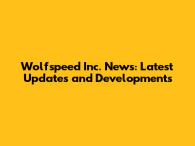 Wolfspeed Inc. News: Latest Updates And Developments